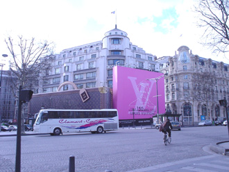 しばらく、フランスネタで毎日ページを更新しよう、なんて思っていたのですが、休んでいた分、ガンガン納品があって、値札つけたり商品出したり、大変なことになっていました。それに最近ちょっと暖かくなって、春物を探しにいらっしゃるお客様のご来店も多く、予想外。さて。前回に引き続き、左写真はエルメス本店のウインドウ。 日程に、土日を入れてしまって、日曜日は仕入先どころか、ショップも百貨店もスーパーですらお休みなので、カフェでお茶飲んだり、観光したりするしかありませんでした。(実はそれが一番の目的だったりする) で、左下の写真は、ちゃんとおのぼりさんらしく、凱旋門の上からみたシャンゼリゼ通り。真ん中右手にちょっと見えるのが工事中のヴィトン本店です。 その拡大が右下の写真。 写真を撮らないと気づかなかったのですが、建物ごと大きなバッグではないですか。。 パリの町並みって、不思議で、写真にすると本当に絵になります。一言で言えば、「町並みは綺麗、街は汚い」です。 行く前から、「犬のフンに注意」と色々な方から言われていたのですが、私が想像するような「固体」のものはあまりなく、毎朝水を流して掃除しているので、木っ端微塵になったものや、干からびてよく分からないものなどが多いようです。でも微妙に匂いますし、踏んづけたら汚いですよね。けど、気にするのは日本人だけなんだろうな。 パリは確かに素晴らしく、歴史を感じさせ、なおかつオシャレだとは思いますが、話題のデザイナーの服や、セレクトショップを探すなら、やはり東京がスゴイ! どうも、日本では、「Paris」という言葉が独り歩きしているように感じてならないのでした。 実際の「湘南」よりも、「湘南スタイル」という雑誌の方がオシャレなように。(笑) |