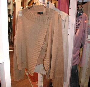 ![]() 昨日の話題の続きですが、右のようなカーデも売れてます。 ピンで前を留めるタイプですが、写真のようにとめたり、もう少し下のほうでとめて襟を折り返したりと、色々使えそう。 昨日と同じく、ブランドはピュリフィエ(エサンス) ¥14000(税込み¥14700)です。 今日は昨日より寒くなって、カーディガン日和。 ボタンがたくさん付いた普通のカワイイカーディガンをあとでアップしよう、な〜んてのんきに思っていたら完売してしまいました。 もし追加できたら、ご紹介しようと思います。 |