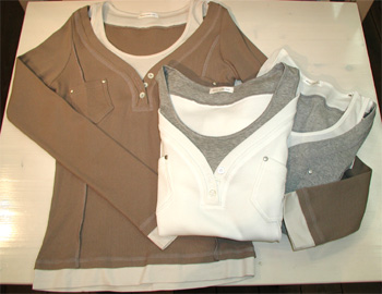 人気商品紹介のついでに。。。3月4日のこのコーナーでご紹介した、ドゥミルアンズの重ね着風カットソーが、生地がチョコッと変わって再入荷しました! ちょうどこれからの季節に最適な、少し薄手の綿のテレコ素材です。 ●ドゥミルアンズ 重ね着風カットソー (9号サイズ) ¥8900円(税込み¥9345) *Sold out ちなみに、画像では分かりにくいですが、 カーキのインナーは、薄いベージュ、 グレーのインナーは、ホワイト ホワイトのインナーはグレー(←これは分かりますね) になっています。 |