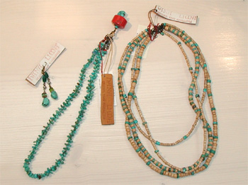 ![]() 左写真、HANA LIMAという、天然石を使った日本人デザイナーのアクセサリーブランド。 ●HANA LIMA ウッドビーズネックレス * Sold out ¥10900(税込み¥11440) ●HANA LIMA 山サンゴ付きターコイズネックレス * Sold out ¥12600(税込み¥13230) ● HANA LIMA ターコイズピアス HAN-5 ¥4600(税込み¥4830) ワイルドすぎないカジュアル感が絶妙です。 |
