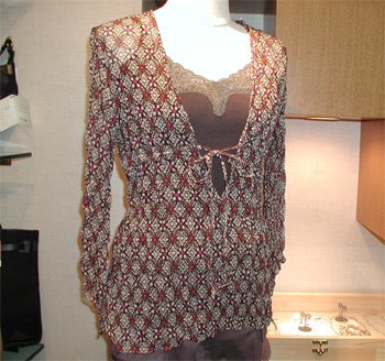 昨日の画像、洋服ではなく、アクセサリのお問い合わせをたくさんいただいてしまいました。(1件)なので、アクセサリの拡大画像もご紹介などを。。。。 右写真、フライングリザードというアメリカのジュエリーブランドで、デザイナーはバローラサボーリンというカナダ人女性。 細かい手作業による繊細で美しいデザインが特徴で、ハリウッドではかなりの人気だとか。 ●フライングリザード ネックレス ¥8900(税込み¥9345) *Sold out あのジェニファーロペスも映画VGIGLIVで着用しているらしいですよ。 皆様も是非・・・ |