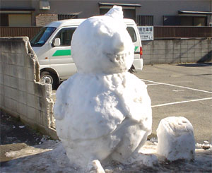 | 今朝、出勤途中、とある駐車場の前で、大きな大きな雪だるまをみつけた。 みつけた瞬間、「ワァ、雪だるま!」と思い、ちょっと幸せな気分を味わうことができた。 実は、幸せって、瞬間で、「幸せだ」と思える瞬間の数で、その人の幸せ度が決まると思うよ、と、昔誰かに言われたことがある。 今日の雪だるま君は、僕の幸せ度アップに貢献してくれた。 次に雪が積もったら、お店の前に雪だるまをつくってみよっと。 でも、「幸せ」というより、「邪魔だね」と思う人が多いかもしれませんね。 |
