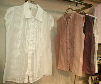 | 今日、高校時代の友人(読者)がお買い物しにきてくれた。 「最近、洋服の写真がいろいろアップされてるから、他のものも見たい、と思って、、、なんか洋服の写真が立て続けにあると、行かなきゃいけない気になるよね。」 ふふっふ。効果絶大ですな。 そして、下写真の、パーカーと、フリルブラウスをお買い上げ!、、、、シメシメ、、、いや、ありがとうございました!! |