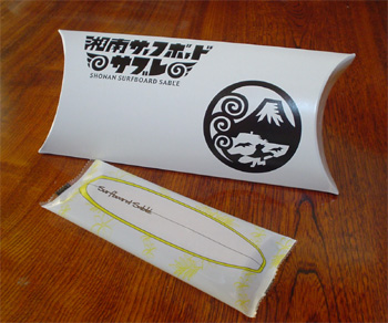![]() 昨日、小坪のフレンチレストラン、ル・ピラートの大久保シェフがお店にいらっしゃって、お土産をいただいてしまった。 その名も、湘南サーフボードサブレ。 自宅で早速食べてみると、鳩サブレーを薄くして、ちょっと硬くした感じ。とても美味しかった。 何気なくパッケージの裏をみると、777円(税込み)と書いてある。 5枚入りだから1枚155円?? タカッ と思ったら、売り上げの一部が財団法人かながわ海岸美化財団に寄付されているんですって。 海のすばらしさを30年後、50年後にも残したい、という思いから作られたサブレー。ちょっと興味あります。 そんなホームページはこちらから!販売店リストとか掲載されていますよ。 |