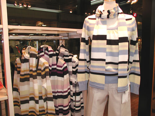 春物のパワーってスゴイですね。寒いのに、店頭を春っぽくするとご来店が増える・・・ そんな中でも、明日からすぐに着れる春物が右写真。 襟開きもとても綺麗、コートの中から春っぽくしてみてはいかが? ・ブラーミンマフラー付きボーダーニット ¥14700(税込み) アクリル50% テンセル40% アンゴラ10% イエロー系、ブルー系、パープル系、ブラック系有り。 実は、昨年のドラマ、「働きマン」の主人公、松方弘子が第10話で着ていたものの追加生産分(新色) ご興味ある方はお早めにどうぞ。 |