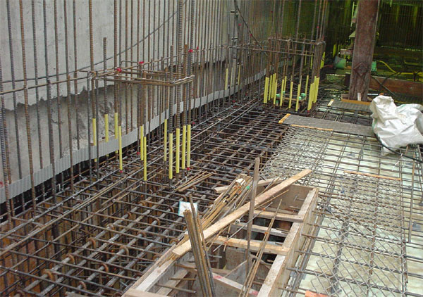 予定通り無事に地中梁、B1Fスラブのコンクリート打設が完了!これで基礎工事完了!良かった・・・ ウルウル・・・あとは基礎の周りを埋め戻しすれば、山留めを支えている腹起し梁、斜梁を撤去できるそうです。(山留めのシートパイルは9メートル強埋まっていて、B1Fスラブまでの基礎が出来上がるとGL(地上レベル)からマイナス4メートルになるので、構造上山留めのシートパイルが自立で強度を保てるのだそう。) しかし、月曜日の11時発表の天気予報で、急遽コンクリート打設を1日前倒し決定、プラントと交渉、鉄筋屋さん、その他職人さんを手配、配筋検査までに配筋をほぼ終わらせ、今日は予測どおりの曇りで打設。門倉組M所長の判断はおみごとです。 |