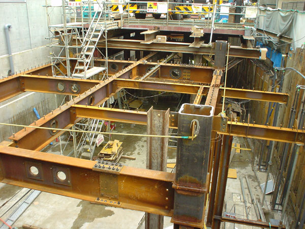 今日は現場の定例会議。朝10時半から、エレベーター打ち合わせにはじまり、夜8時すぎまで。 現場では昨日から鉄骨の建て方が始まっています。 梁(横方向の鉄骨)に穴がボコボコ開いていますが、コレが配管スリーブで、1Fにある、銀座通りからサンルイ島に抜けるビル内通路に、排水の枡を出したくなくて検討に検討を重ねてルート確保した配管が通る穴。 特に、排水は勾配を取らないといけないから、かなり大変でした。 新しい鉄骨なのに、一見錆びてる、と思う方もいらっしゃると思いますが、錆びている部分は、コンクリートに埋まる部分、耐火被覆を吹き付ける部分で、錆止めなどをするとかえって付着が悪くなるらしい。(ボロッと取れる錆はダメですが) 鉄骨同士をスプライスプレートで繋いでいる部分など、錆があったほうが強度が上がる、という噂も・・・ もちろん、見える鉄骨は錆を落として、亜鉛メッキ等をすることになります。 |