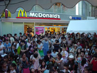 | さて。明日、明後日(7/15,16)は、毎年恒例の逗子の亀ヶ岡八幡宮の祭礼。 駅前ステージでは、さまざまな出演者が出ます。 ここ数年おやすみしていた、マクドナルドのドナルドも来ます! 明日の14時からです。 ドナルドはなかなか本物には会えないです。(といっても、昨年マックの閉店時に来たし、つい先月も新装オープンの時に来たんですけどね。) しかし、明日はちょうどその時間、配筋検査と重なっているので、ドナルドの写真、とれないかも。 誰か写メで送ってください。明日のネタにしますから。 明日は朝8時からステージ設営なんですよね・・・関東は梅雨明けしたみたいだし、暑そ・・・ |