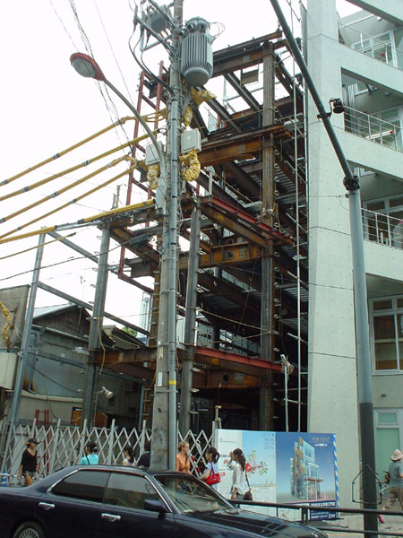 今日、現場の前を通ったら、シートで全て覆われていて鉄骨も何も見えませんでした。なので、慌てて一昨日撮っておいたの画像をアップ・・・ 一番銀座通り側まで鉄骨の建て方は完了し、お隣との境の防火壁の下地も出てきていました。 この防火壁には曇りガラスが入る予定なので、それほど圧迫感は感じられないと思います。 今回の工事で最難関だった鉄骨建て方もこれで完了! 事故も無く、本当に良かった。 それはそうと、完売してしまって、追加入荷のお問い合わせをいただいていました、シレーヌマーメイドの7分袖ラウンドネックカットソーが入荷しました! 当店で扱っている8色全て在庫が揃っていますので、秋物は先ずインナーから揃えてみてはいかがでしょう? お買い物はコチラです |