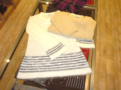 ![]() ブラーミンらしいニットが入荷しました! 丈が長い方はボーダーの部分に、短いニットの方は全体的にスパンコールがちらほらとちりばめてあります。 12月に入ると、色々と少しおめかしする機会が増えると思いますが、そんな折には最適です。 モヘアの感じや、少しキラキラする感じも上品で、女性らしくてオススメ! お買いもののページにアップしてありますのでどうぞ。 今なら楽天ポイント2倍です。 |