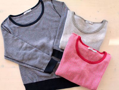 ファッションとは無関係な某取引先、E社のOさんとの会話。「ココのところ寒いから、冬物を探してお客様がたくさんいらっしゃるんですよ」 「浮きPOPの効果ですね!」 「・・・・・・」 ありゃ、、、。読んでいただいているんですね。 そう。浮かせPOP効果もあるのかもしれません。(詳しくは1月20日参照) 店頭は寒いのでまだ冬ですが、WEBは着々と春物が増えています。 写真は、新ブランド、イギリスのアドリアナ・ケイというブランドのカットソー。 とても柔らかく伸縮性があって着心地が良い上、色使いと形がとても魅力的です。 気になる方はコチラをご覧くださいませ。 |