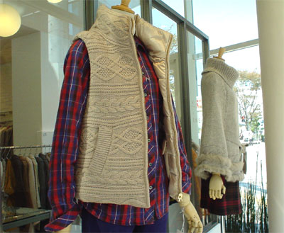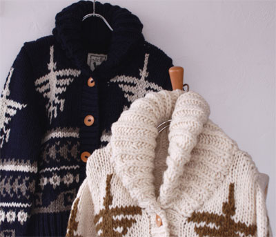 写真は今日のウインドウ。ちょっと風景の映り込みが目立ちますが、今日はコレから雨が降って大荒れだそうですので、早めにパチリと・・・ようやくニットが暖かく感じる気候になりました。(今までは暑い・・・) で、ニットを中心にディスプレイ。 右のニットは、今年も大人気、ペルーニット。 写真のものは、柄がなんとも可愛らしく、心も体も温まりそうです。 詳しくは、お買いものページをご覧ください。 左のニットは、少し襟が大きく、デザインも配色もちょっと変わった感じ。 スウェーデンの、Twist&Tango (ツイスト&タンゴ)というブランドのものです。 気になるお値段は¥22050(税込) こちらは店頭でどうそ。 |