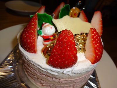 メリークリスマス!皆様、どのようなクリスマスをお過ごしでしょうか・・・?(毎年同じこと言ってる気がしますが) 我が家では、卵と乳のアレルギーのある息子(3歳9カ月)が、いつもケーキを食べられずにかわいそうと思い、今年はアレルギー対応のクリスマスケーキを注文してみました。 米粉のスポンジに、豆乳クリーム、イチゴのピューレ等が材料。写真のフレッシュいちごは後から僕が乗せました。 見た目はクリスマスらしく、とても可愛らしく、サンタさんもトナカイも、ヒイラギの葉っぱも乗っかっていて大喜び。 そして食べると、、、 あまり食べ付けていないせいか、イチゴだけたべて、残りは「おかあさんにあげる」と。 結局ボクと妻が大半を食べる羽目に・・・ 味は・・・・ クリームはかなり美味しいですけど、スポンジは、やはり小麦粉と卵のものにはかなわないかな・・・? こんなことなら、普通のクリスマスケーキにして、トッピングの果物だけ子供にあげるのが丁度よかったかも・・・ |