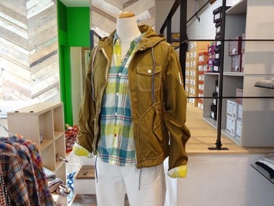お天気の日はさわやかな気候ですね!これで花粉とか黄砂とかPM2.5とかなければ思いっきり深呼吸したいところですが・・・ 写真は、ウチのお店にはめずらしい、ボーイッシュなスタイリング。 週末、ちょっと海や山へでかけるときに、気分を盛り上げてくれそうです。 ブルゾン : フィデリティ ¥14700(税込) シャツ : D.M.G. ¥11550(税込) パンツ : ハリス×Leeコラボ ¥19950(税込) D.M.Gのシャツは、他にピンク系もありますが、一番下のボタンの色が違うデザインになっているのがポイント。 今年のトレンド、ネオンカラーも、こんなシャツだったr、抵抗なく取り入れられそうです。 |