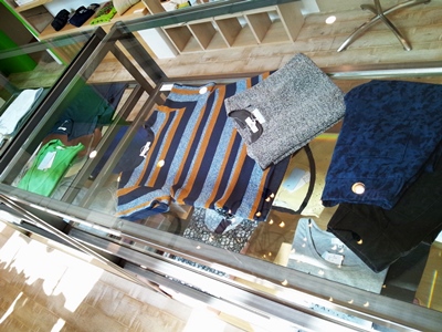 新入荷が増えてきたので、新入荷コーナーを作りました。・・・・と思ったら、妻がFACEBOOKのネタに早速していて、「同じ写真、使わないでよ」と釘をさされた。 なので、アングル変えました。 脚立つかって、天井から、アクロバティカルに・・・ 右端に見えるのは、お店の中央にある、ジノサルファティのバルブランプ。 ちょっと秋を意識した色使いですが、まだまだ涼しげな素材が多いです。 夏休みのお出かけに着ていく服がない〜 という方は、是非チェックしてみて下さい。 詳しくはコチラをどうぞ。 |