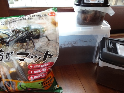 | 8月10日のひとりごとの話題にしたカブトムシですが、3匹いたのが、現在はオス1匹のみ。 1ヶ月以上経ってもまだ元気に生きています。 その他の2匹は死ぬたびに子供とお墓を作りました。 「なんで死んじゃったの?」「死ぬってどういうこと?」「なんでお墓作るの?」と、少し難しい教育にもなる。 あと1匹。寿命もそろそろ。夏も終わりだな、、、 なんて思いながら深夜、テレビを見ていたら、1匹だけでもずいぶん色々な音を出す。 夜行性だし、元気だな。 エサは大丈夫かな・・・? と、水槽のぞくと、土のあちこちがもぞもぞ、、、、 エサ台にしていた朽木をどかしてみたら、、、なんと幼虫が動いているではないですか! 水槽を下からのぞくと、、、その数20匹以上・・・・ ギャ! 「 ・・・・・ 」 やれやれ。 カブトムシの幼虫を育てる仕事、決定! あんまり好きじゃないんだけどな。 育成マット(クヌギの木屑を発酵させたもの)と、大きめのプラケース、買わなきゃ・・・ |