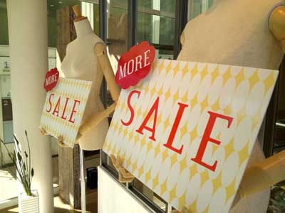 セールも中盤に差し掛かり、一昨日から再値下げをしました。そして、店頭POPにも「MORE」の文字を。おなじみ『浮かせPOP』で。 効果抜群!入店されるお客様も増え、売上も↑↑! 今回の浮かせPOP、たまにWEBページも作ってくれているスタッフTさん作ですが、見た瞬間、(なにこの雲形、切るの大変・・・・) でも文句言わず、厚紙にはりつけて、カッターで切りましたけど、仕上がりはあまり美しくないなぁ・・・・ ですので、ご覧になる際は、遠くからなんとなく見ていただけるとありがたいです。 ちなみに、WEBショップも昨日から再値下げとなっておりますので、再度チェックしてみてください。 セール会場はコチラです。 |