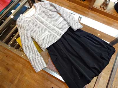 先日の雪で、スノーカバーを過信して車がスタックしたお話を書きましたが、なんと、人通りがほとんどなかったのにも関わらず、商店街の方に見られていました!今日、某Yさんというお店の前を通ったら、「こないだの雪の時、み〜ま〜し〜た〜よ〜。大変でしたね〜」と、奥さまのSさん。 お巡りさんに車を押してもらっているのを見られていたみたい。 誰かが見ているんですね・・・・ さて、写真は今の注目度ナンバーワンのもの。 スウェット素材のものや、綿入りのベストがすぐに着れて、少し季節も意識できるので良いと思います。 スカートはリバティプリントのもので、WEBショップでも購入できます。 どうぞコチラをチェックしてみて下さい。 |