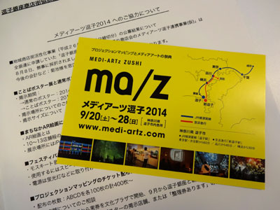 昨夜は、逗子銀座商店街の理事会。9月20日(土)〜28日(日)の、「メディアーツ逗子2014」の説明と協力依頼がありました。(旧・逗子メディアアートフェスティバル) ここのところ、回を重ねるごとに人気が高まっている、逗子小学校でのプロジェクションマッピングがメインイベントですが、その他、今回は街の至る所で様々なメディアを使ったアートが見られるとか。 どんな場所で、どのようなアート作品に会えるかは、これから詰めるそうですが、映像や光、音を使った、どんな新しい表現の仕方が出てくるか、楽しみです。 そういえば、当店では一昨年、四角垂の中に、3Dの映像が浮かび上がるものを展示していました! 詳しくは2012年10月8日のひとりごとをご覧くださいませ。 |