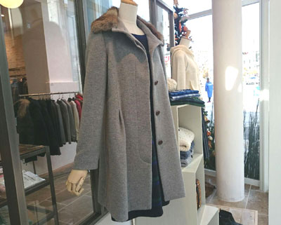 写真は、先日(12月15日)にご紹介したニットの写真に写っている反対側のコート。 「あ、このコート、ブログで見たヤツですね」と、お客様から言われまして・・・ニットよりもコートにご興味があるようなので、今日はコートもご紹介。ここ数日、寒いですもんねぇ・・・ 今朝は起きると1度。1月並みの寒さ。。。 写真のコートは、ピンクムスーのウールのコートで、ラビットファーが付いています。ファーは取り外しも可。 とてもシンプルですが、イタリア製の生地の素材感がとても良く、着た時の形が美しいです。着心地もバツグン。 ちなみに、当店のWEBショップはは年内休まず、31日も16時までの御注文は即日発送しますので、年末年始のお出かけに是非・・・ 詳しくはコチラのページをどうぞご覧くださいませ。 ※リアル店舗は29日までの営業です。 |