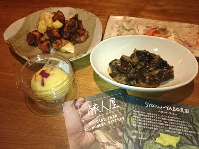 葉山の先、大楠山の麓にある「SHYOKU-YABO農園」プロデュースのお惣菜屋、『旅人屋』に、ようやく行くことができました。オープンが6月17日だから、行かなきゃ、と思いつつ、もう4カ月以上経とうとしている・・・(6月20日のひとりごと参照) すまぬ。Y君。 販売していたお惣菜は、それはそれは素材や調味料にとことんこだわった美味しそうなものばかり。すだち香るホクホクさつまいも、麦味噌バンバンジー、茄子の青紫蘇こじょうゆ味噌炒め、味噌たまり肉じゃが、名前を聞くだけで食べてみたくなります。 唐揚げは豊後鶏とじゃがいもの魚醤唐揚げ、だったかな? 春雨サラダも美味しかったけど、名前忘れた・・・ お味は、どこか懐かしいような、古くもあり新しくもあるような味。酸味、塩気、甘み、辛み、旨み、香り、食感等、感覚に訴える料理でした、(←旅人屋のパンフレットから引用。その通りでした。) 場所は、横浜高島屋の地下1階。崎陽軒のはす向かい。 デパチカなのに保存料や化学調味料を使わず、安全な食材を選定し、手間暇かけて作られている所が、今晩のおかずをお惣菜にしてしまう罪悪感を取りはらってくれる、そんなお店でした。 忙しいお母様方、横浜でオカズを買ってしまおう、と思ったら、迷わず「旅人屋」へどうぞ。 |