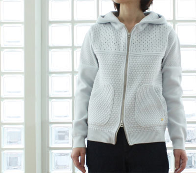 一昨日のコートがいらないポカポカな気候のお陰で、今日は寒さが身にしみる、、、と思ったら、ヒートテックを着忘れたことに気付いた。皆さまも風邪など召されぬよう・・・今はちょうど春もの納品が多い時期なので、商品の写真をば・・・ 何かと使い易いのはパーカーですが、コチラのパーカーはニット地で数種類の異なる編み方で切り替えになっている、ちょっと珍しいパーカー。 カジュアルになり過ぎず、上品に着れると思います。 アラアラのもので、お値段、¥23,000+税。(見た目は可愛いのに、お値段は可愛くないですね・・・) 詳しくはコチラのページをどうぞ。 |