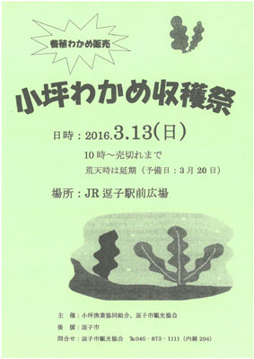 ![]() 近づいてみてみると、、、皆さん、大きなビニール袋一杯にワカメを詰め込んでいました。 テントには、「ワカメ詰め放題 1回500円(おひとり様1回限り)」の文字。 イベントは「小坪わかめ収穫祭」でした。 朝10時~ 売り切れまで。 11時過ぎには、売り切れたようで、何事もなかったような日常に戻っていました。 え? 終わってから情報上げてもしょうがないって・・・? スミマセン。 来年は気をつけます・・・ |