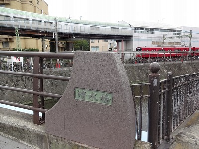![]() 清水橋。 京急新逗子駅のホームはは、この清水橋と中町橋の間にあります。 |
