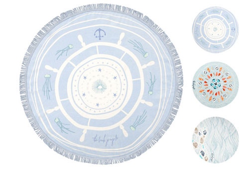 写真の、なんだか小さければワッペンのような、大きければラグのようなもの、実はコレ、タオルです。オーストラリアの、ビーチピープルというブランドで、この、ラウンド型のタオルが世界中のビーチで人気なのだとか。写真は、直径約1メートルの小さめタイプ。1.5メートルのタイプもあります。 ビーチタオルとしてはもちろん、ポップアップテント内の敷物、リビングのラグマットや、ソファのアクセントとしても。 柄も、クラゲや貝や魚など、とても可愛らしい。 お値段、¥12,500+税(可愛らしくない・・・) 詳しくはコチラのページをどうぞ! ※今日は普通の商品紹介の巻 |
