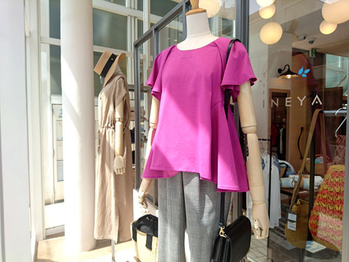暑いですねぇ、、、昨日は、お店は夏休み明けで、電話が朝からジャンジャン。大切な電話も、そうでない電話も。その中からある営業電話をご紹介。 「弊社、電気代をお安くできるサービスを、この地域でも開始できるようになりまして、月に15,000円以上払われていれば、お安くできるのですが・・・」 「ビルで一括して高圧で受電していますが、それも対象ですか?」 「高圧でもお安くできます。電気料金の計算書を1年分お送りいただいて、お安くできるかどうか検証させていただいてから・・・ でも、データをお送りいただくのに、お手間かかっちゃいますよね。また機会があれば、ってことで、またよろしくお願いします~」 あれれ。自己完結してしまった。 店頭は新商品が続々と。写真は今日のウィンドウ。 SONOの一見シンプルなプルオーバーブラウスですが、後ろ下がりのシルエット、ボリュームのあるバルーンスリーブ、ギャザーとフリル使い等、技ありポイント満載です。 気になるお値段、¥15,000+税。 詳しくはコチラのページをどうぞ。 |