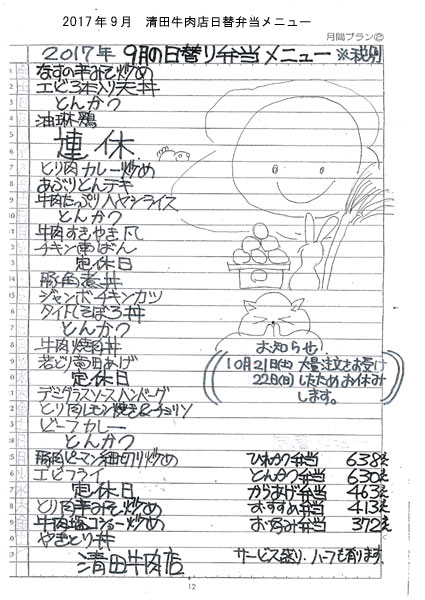 | ◆INEYA◆店主のひとりごと 2017年9月 | ← 前へ 次へ → |