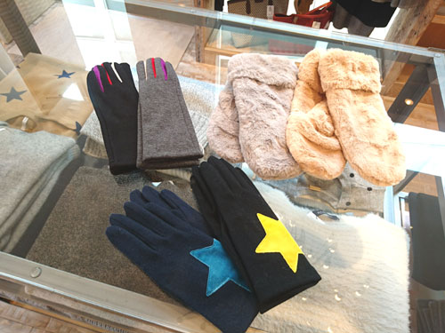 昨日もポカポカ暖かかったですが、週末から寒くなるらしいですねぇ、、、最低気温が逗子でも4度とか5度とか・・・ というわけで、10度切ると、マフラー、手袋が必要になってきますので、手袋のご紹介です。 写真左上、セルジオ・デ・ローザという、イタリアの手袋専門ファクトリーのもの。指の間のマルチカラーがポイント。内側が起毛していて暖かいです。 お値段、¥4,900+税。 詳細はコチラのページを。 右上のふわふわのミトンも、セルジオデローザのもの。フェイクファーの間から指先が出せるデザインなので、スマホの操作や小銭の支払い等にも大丈夫そうです。 お値段、¥5,500+税。 詳細はコチラのページを。 そして、下の星柄の手袋は、ヴァンサンプラディエというイタリアのブランドのもの。 ウール混で薄くて軽くて暖か。人差し指がタッチスクリーン対応になっています。 お値段、¥7,200+税。こちらは店頭でご確認を。 |