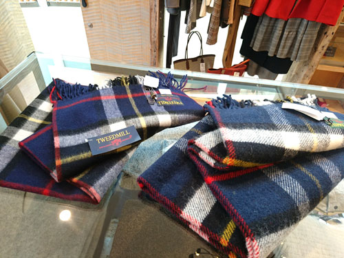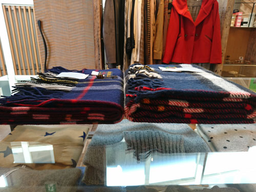 寒くなる、と分かっていたのに、めちゃめちゃ寒いです・・・朝、開店前にお店の外を掃き掃除したら、手がかじかむほど。こんなに寒かったっけ??(なんて言ったら、もっと寒い地方の方には怒られてしまいますね。)まさに、手袋やマフラーコートなどの防寒具は必須! というわけで、今日の写真は、ツイードミルのストール。 左がマフラーストールタイプで、右がブランケットストールタイプ。 |
