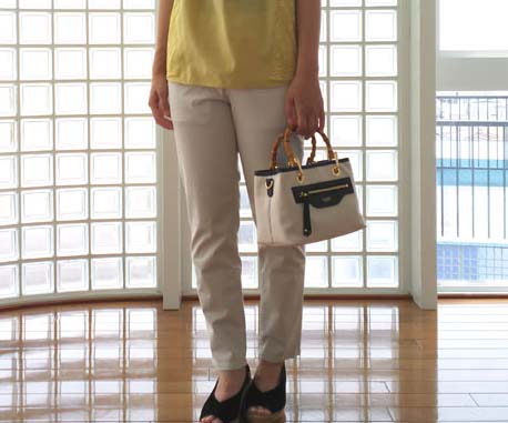 雨が続いて、湿度が高くて、梅雨真っ只中な感じですね〜。一昨日の夜、暗い部屋でテレビを見ていたら、なんとなく頭にモゾモゾ感が・・・ アリかな? 嫌だな、と思い、頭を手で払ってもなにも落ちてこず。 しばらくしたら、今度は首のあたりに何かが歩いている感触! 掴んでみると、何か、虫・・・ ウワッと思って、床に投げたら、、、4センチくらいのムカデの赤ちゃんでした。 慌てて凍殺ジェットを持ってきたときには、すでに逃げられた後・・・ いずこへ〜〜 今日も明日も、ムカデにおびえる夜がつづくのでしょうか・・・? さて、そんなムカデの気持ち悪さも忘れさせてくれそうな、さわやかなバッグのご紹介。 写真は、ヴィオラドーロのミニトートバッグ。 トレンドのバンブーハンドル、ほどよい大きさ、ゴールドの金具で綺麗目な印象、ショルダーストラップ付きで、この夏活躍間違いなしです。 お値段、23,000+税。 詳しくはコチラのページをどうぞ。 |