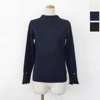BRAHMIN (ブラーミン) ニット ハイゲージ総針 パールボタン ボトルネック 袖スリット B91503 ◇