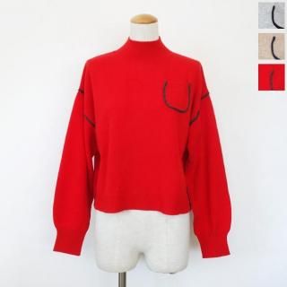 MyLanka (ミランカ) ショート ニット 配色パイピング ハイネック ドロップショルダー 長袖 M90515