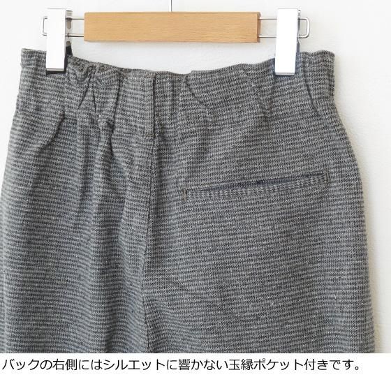 ストレッチの効いた生地で動きやすく、ウエストはゴム仕様でストレスフリーの穿き心地。