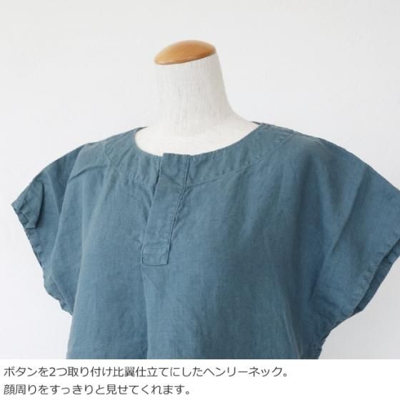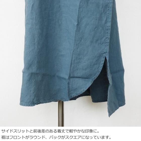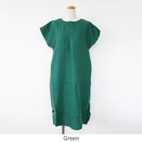 D.M.G (ドミンゴ) ワンピース リネンキャンバス ヘンリーネック フレンチスリーブ サイドスリット 16-0677L