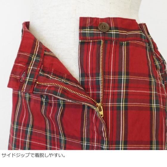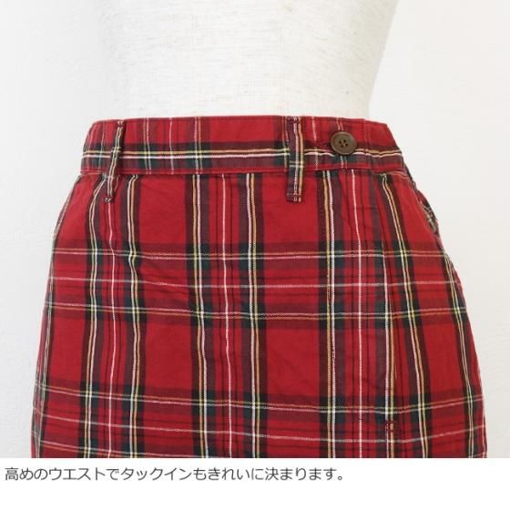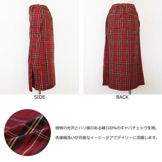 細番手の糸を密に織り上げたコットン100%のギャバチェック生地を使用したスカート。