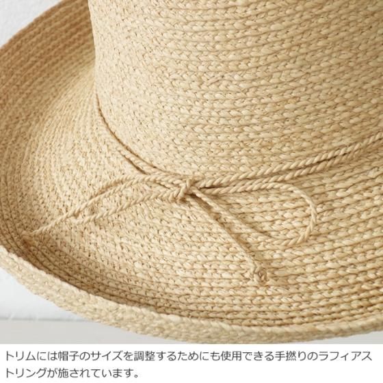 幅広に編み上げられたラフィアブレードを使用し、広めのブリムでエレガントに仕上げています。
