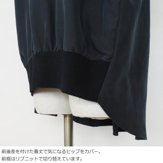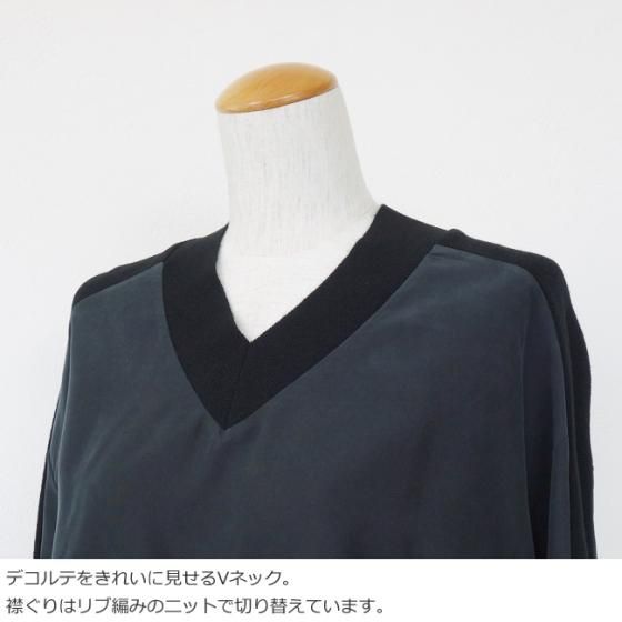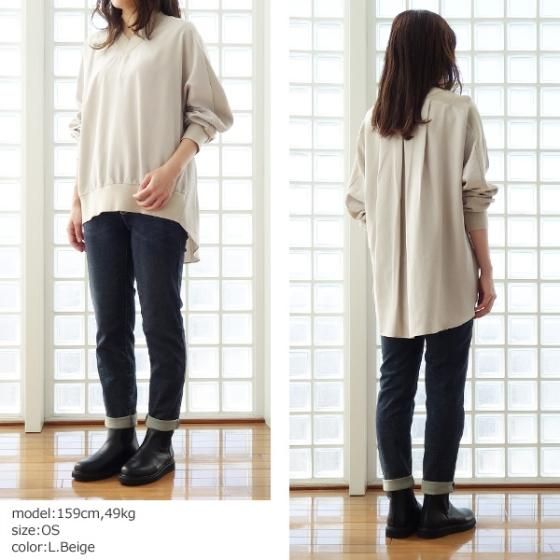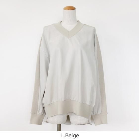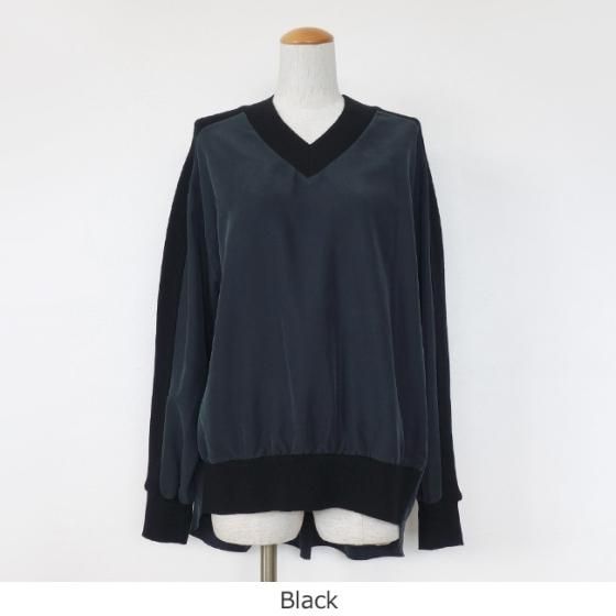 布帛とニットパーツを合わせた異素材ドッキングのプルオーバートップス。