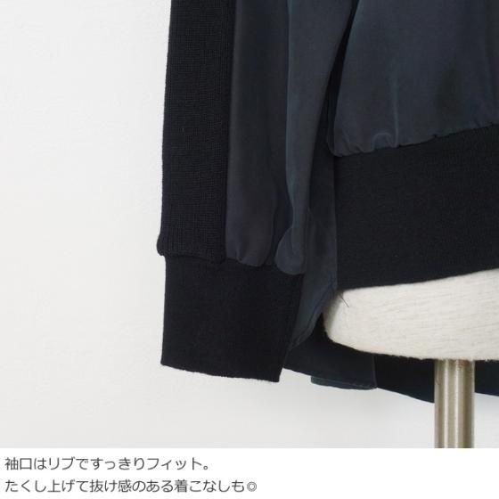 きれいめなブラウス素材にニットでカジュアル感と暖かみをプラスしています。
