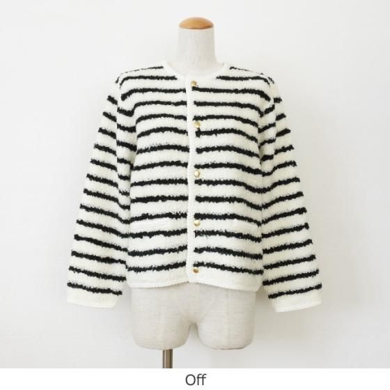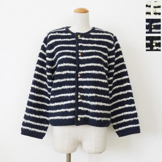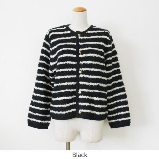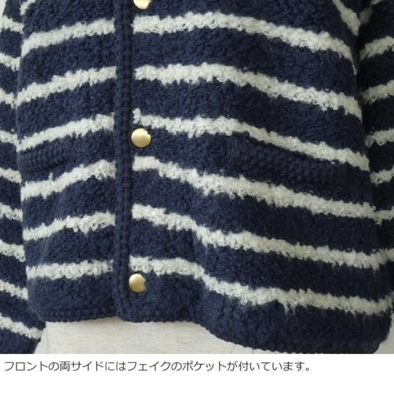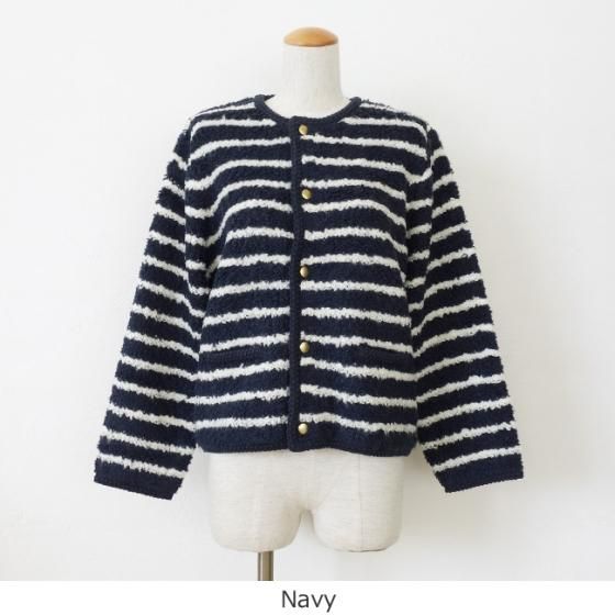 ループ糸を使用したもこもこのボーダー柄が可愛いジャケット。