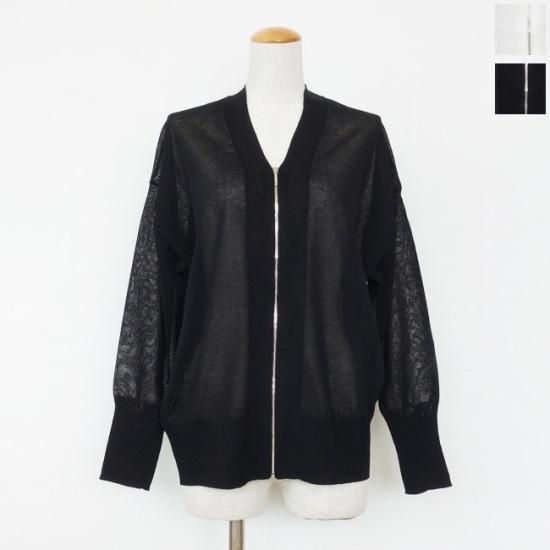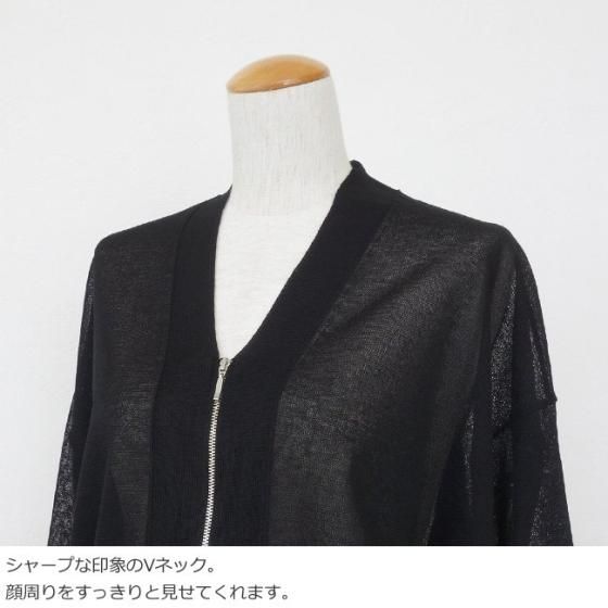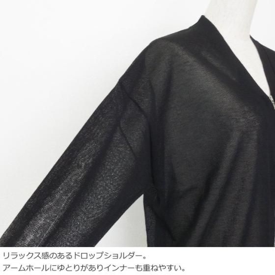 涼し気な透け感とシャリ感のあるニット素材を使用したカーディガン。