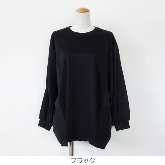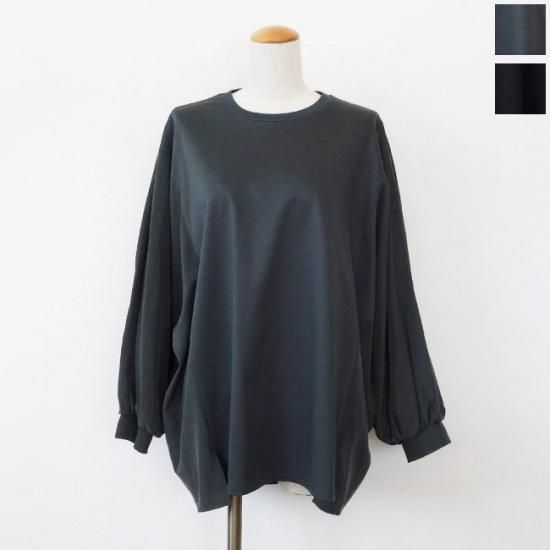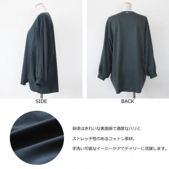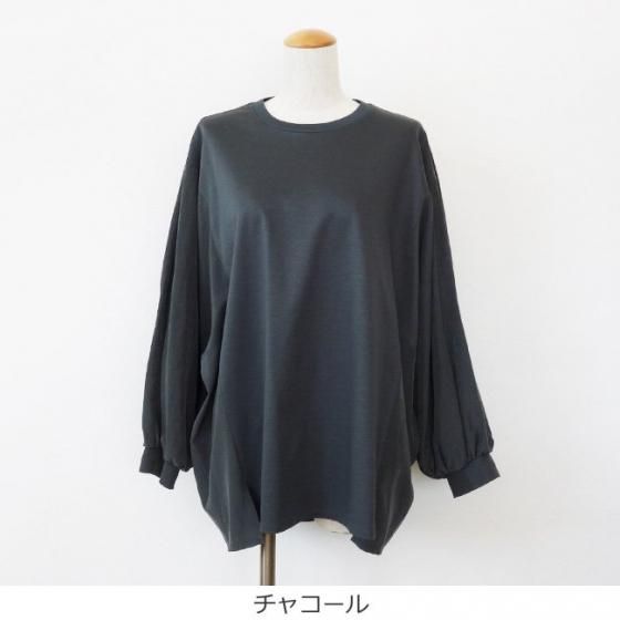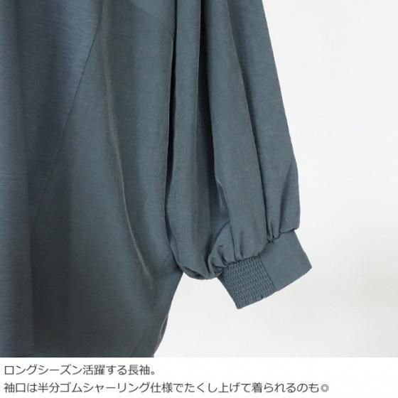 袖口の半分はゴムシャーリング仕様でたくし上げてボリュームを出す着こなしも◎