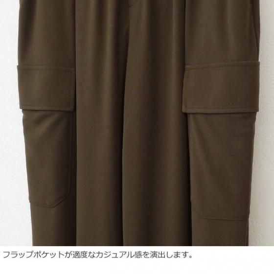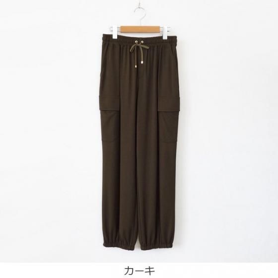 ウエストは総ゴム仕様で締め付け感がなく、股上が深く安心感のある穿き心地。