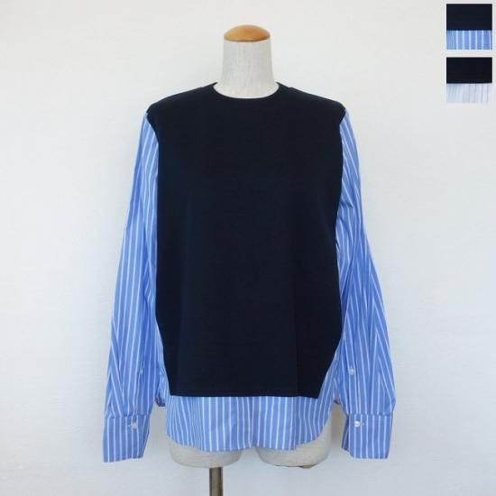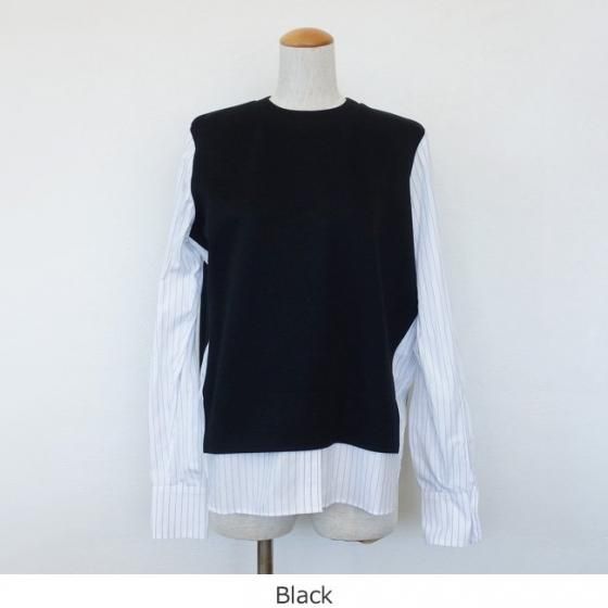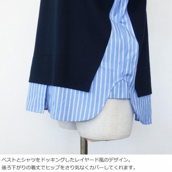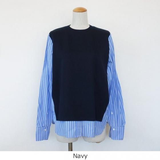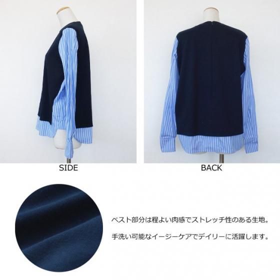 ベストとシャツを重ね着したようなドッキングプルオーバー。