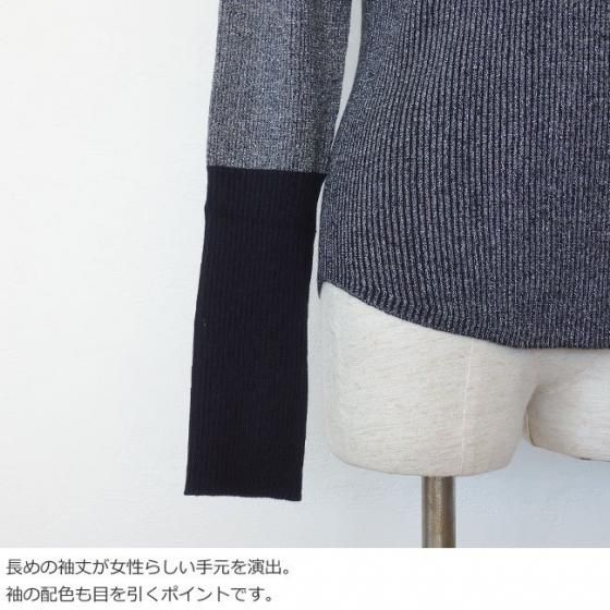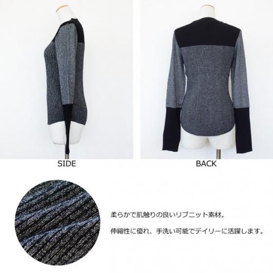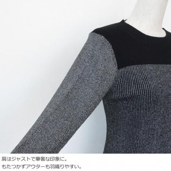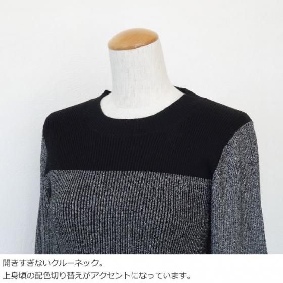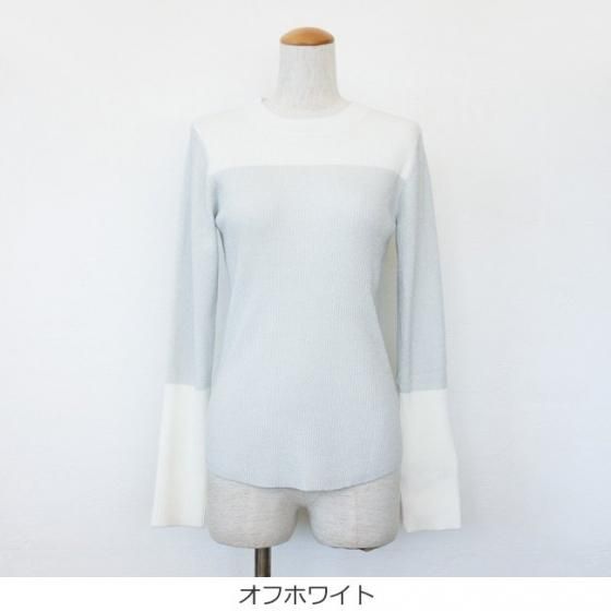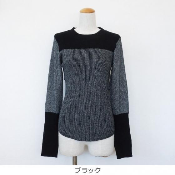 SALE [30%OFF] Dignite collier (ディニテコリエ) ニット リブ ラメ クルーネック 長袖 配色 TK-80243503 返品不可