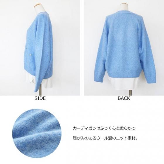 Vネックのカーディガンと裾を布帛で切り替えたカットソーの2枚セット。