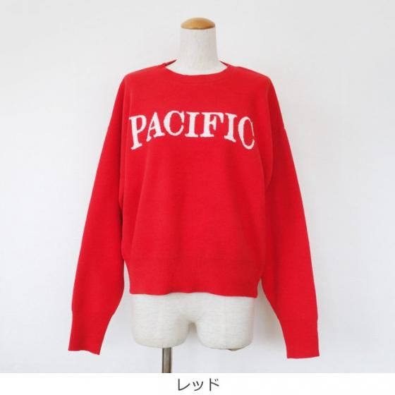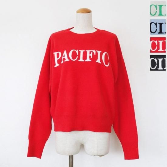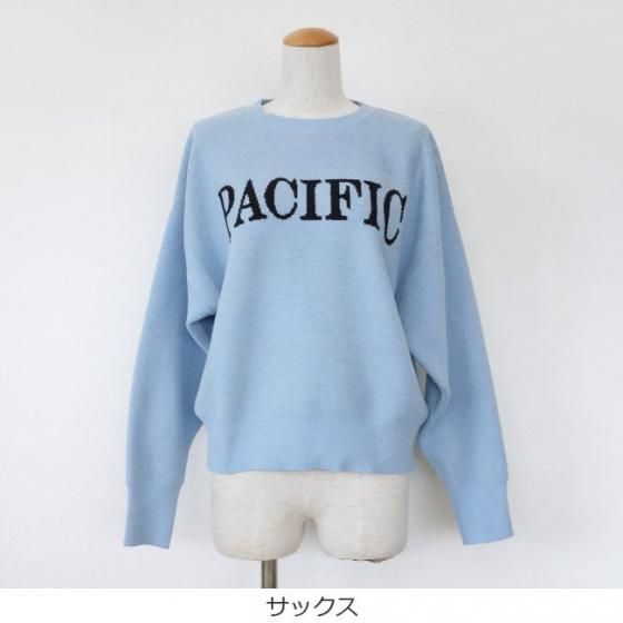 SALE [30%OFF] Dignite collier (ディニテコリエ) ロゴ ニット ベロアモール クルーネック 長袖 PACIFIC LC-80243507 返品不可